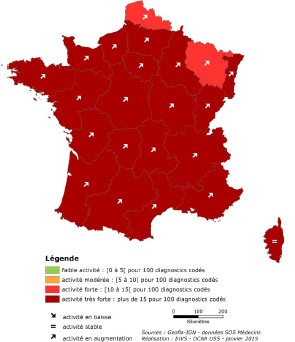 Selon le dernier bulletin de l’Institut de veille sanitaire (InVS), l’épidémie de grippe est en phase ascendante. Le taux d’incidence des consultations pour syndromes grippaux est de 750/100 000, en très forte augmentation par rapport à celui de la semaine précédente.