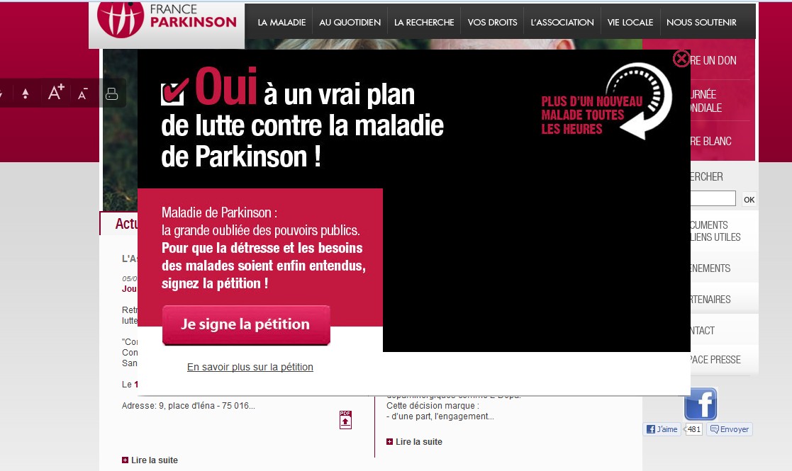 Pour l’Association France Parkinson c’est aussi le moment de réclamer une nouvelle fois au gouvernement, un “VRAI Plan de lutte contre la maladie, assorti d’objectifs, de moyens chiffrés et d’un calendrier précis”. C’est pourquoi l’Association a lancé une pétition en ligne sur son site afin que la voix de celles et ceux qui souffrent de la maladie soit enfin écoutée par les pouvoirs publics.