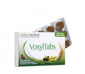 > VoxylTabs (Naturactive Pierre Fabre) dès 6 ans est disponible en pharmacie, en boîte de 24 pastilles à sucer